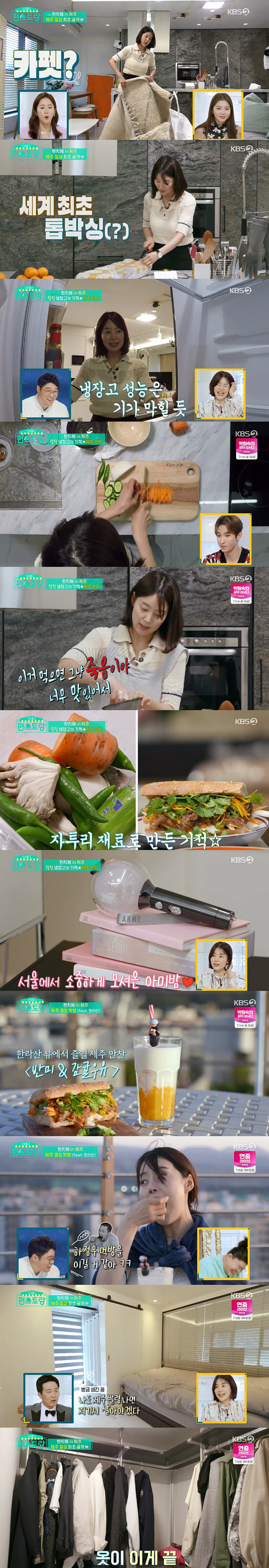 집에서 짐을 풀던 한지혜는 가위를 못찾아 톱을 꺼내 박스를 뜯으며 "정리정돈 중이어서 가위가 어디있는지 모르겠다"고 웃었다. 배가 고프다며 두대의 냉장고를 열었지만 텅텅 빈 상태였다. 자투리 채소 밖에 없는 상황에서 한지혜의 진정한 요리실력이 발휘됐다.