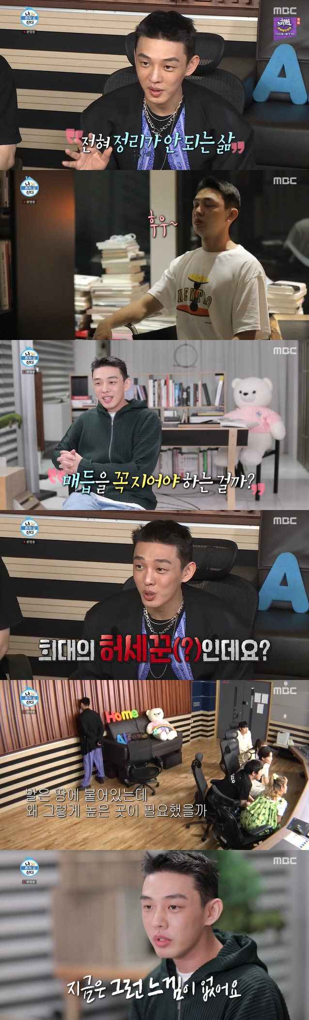 유아인은 "이사 준비하면서 많이 하는 생각이 '삶을 잚못 살았다' 이런 생각이다. 겉은 번지르르한데 전혀 정리가 안 되는 삶을 살고 있구나 싶었다"고 밝혔다. 이어 "미니멀 라이프는 한참 전부터 생각은 했다. 근데 물건에 의미 부여를 많이 해서 비워지지가 않더라. 그래서 정리가 안 되는 거 같다"로 털어놨다.