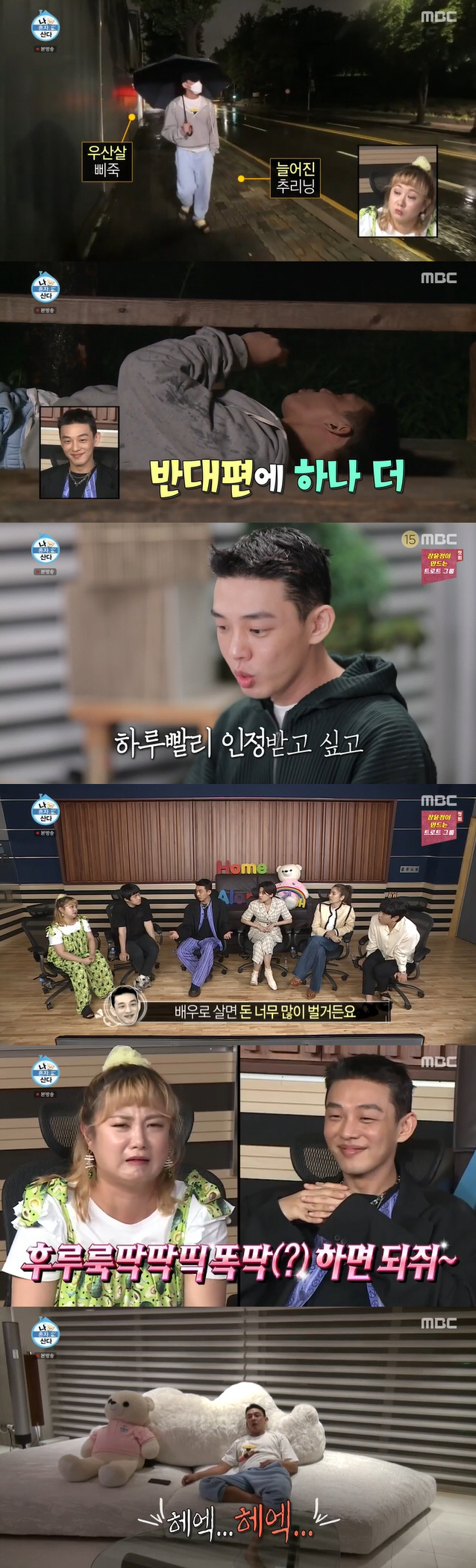 유아인은 "매듭을 꼭 지어야 하는 거냐. 누가 굳이 시켜서 시작과 끝이 정해져 있는 게 아니고서는 굳이 매듭 안 지어도 되지 않냐. 그러다 삶이 어지러워질 수 있지만 하지만 인생은 앞으로 가고 있다는 거다"며 자신만의 철학을 전파(?)했다. 그러나 이를 지켜보던 이시언은 "뭔 소리냐"고 어이없어 했고, 박나래는 "희대의 허세꾼"이라고 지적해 폭소케 했다.