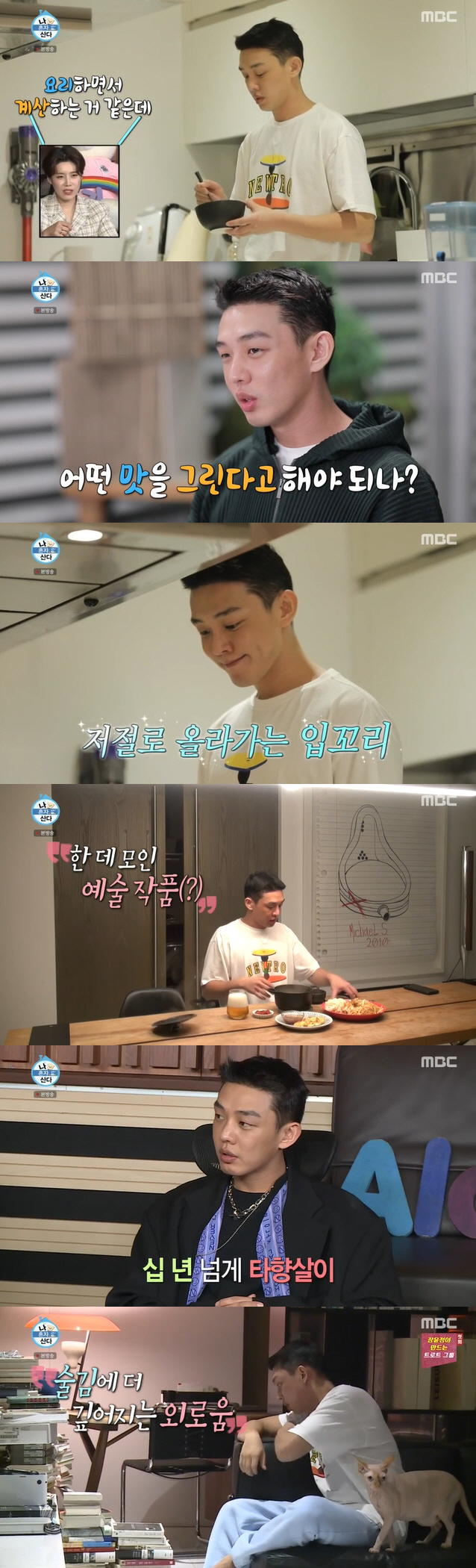 그러나 유아인은 식사 내내 온몸으로 외로움을 뿜어냈고, 결국 식사 도중 침실로 올라가 생각에 잠겼다. 이를 지켜보던 기안84는 "제발 이대로 자지 마라. 친구랑 전화라도 해라. 사람이랑 얘기 좀 해라"라며 남일 같지 않은 듯 걱정해 웃음을 자아냈다. 이에 유아인은 "특별히 외로움을 타는 것보다 특히 요즘은 이사를 준비하는 시간이어서 뭘 하다가 생각에 잘 빠진다"고 해명했다.