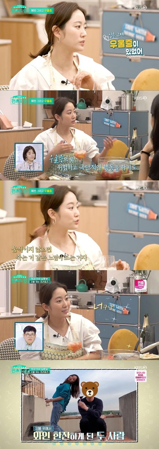 또 전혜빈은 "사실 결혼 전까지 좀 우울했었다. 그땐 정말 최악이었다. 우울증 약을 먹을 정도로 심했었다"며 '우울증이 찾아온 이유'에 대해 "뜻밖의 오해를 받게 되거나 감당해야할 것들이 많아지다 보니 공황장애처럼 왔다"고 털어놓았다.