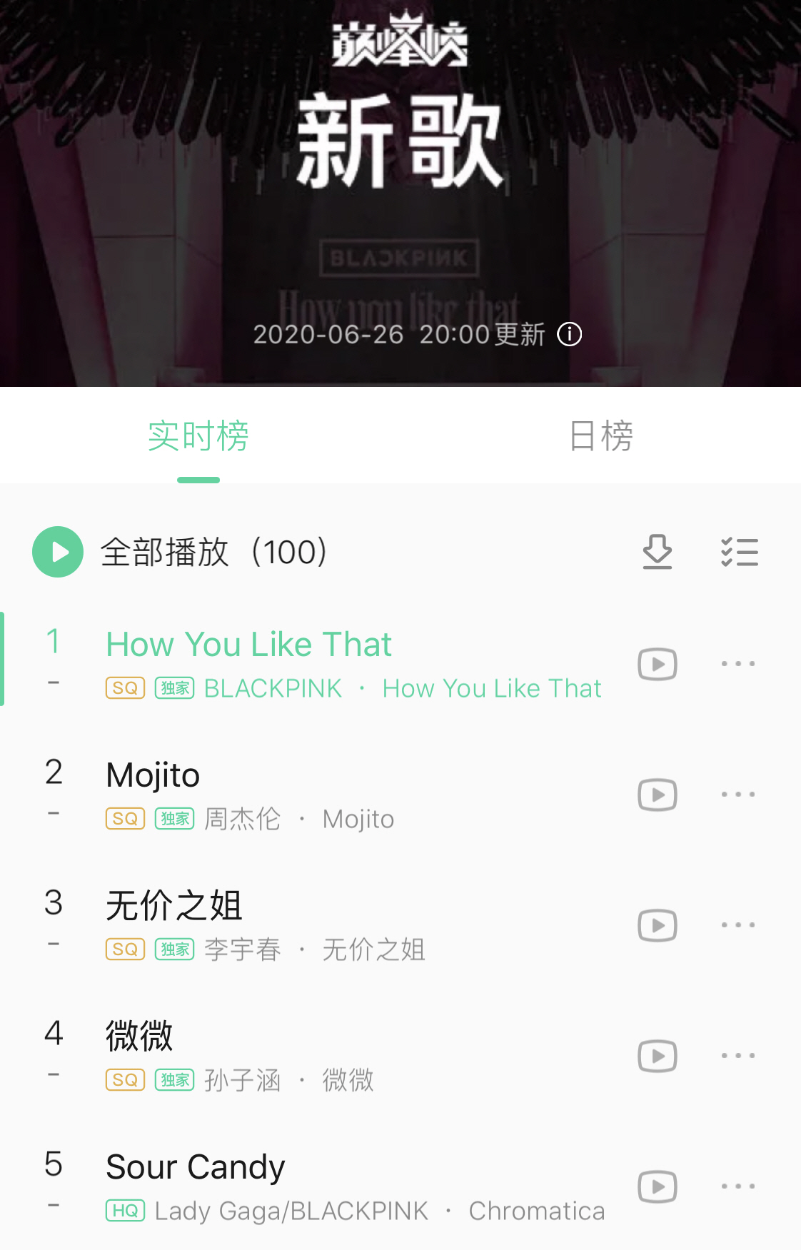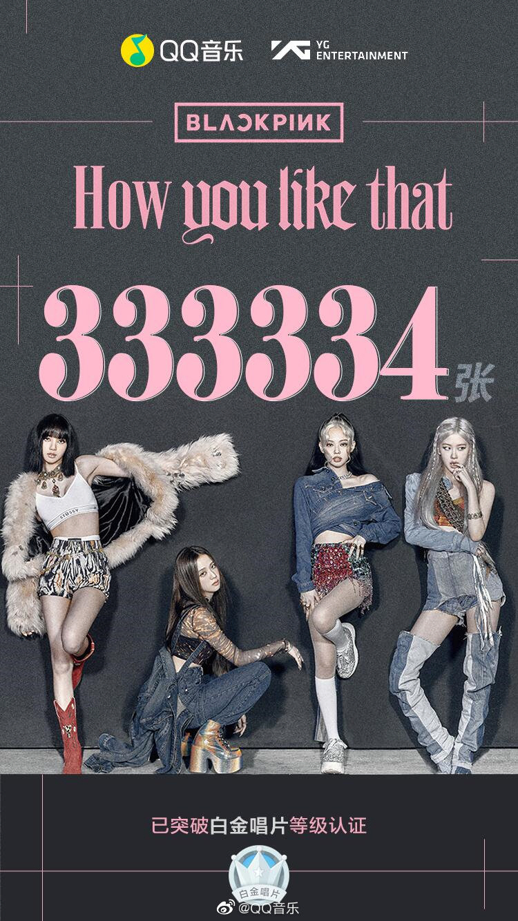 이번 컴백 신곡 'How You Like That'은 QQ뮤직에서 단일 예약자 50만 명을 돌파해 한일 걸그룹 중에 가장 빠른 성적이다. 순식간에 판매량이 100만장을 돌파중이다.