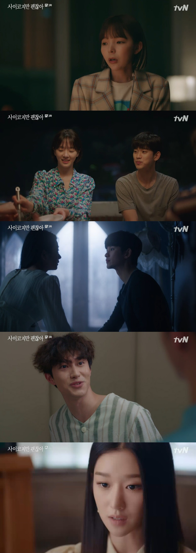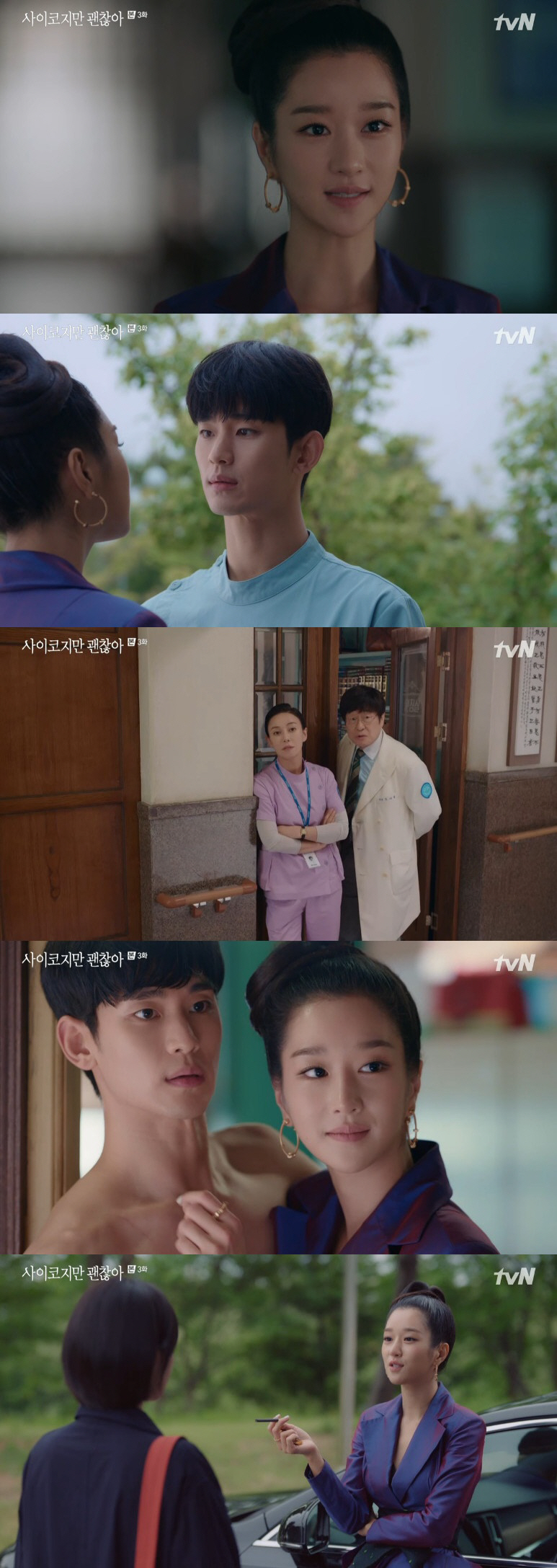 문강태가 옷을 갈아입는 도중 고문영이 들어왔다. 문강태는 옷을 벗은 채 고문영을 쫓아냈지만 이 모습을 남주리(박규영 분)가 보면 분위기가 미묘해졌다. 남주리는 고문영에게 "강태 씨랑 어떻게 아는 사이냐"고 물었고 고문영은 "만날 때마다 생과 사를 오가는 극적이었고 그 순간마다 반전이었다. 그런 우연이 쌓이고 쌓여서 어쩌다 여기까지 흘러왔다면? 그건 무슨 사이라고 해야 돼?"라고 되물었다.