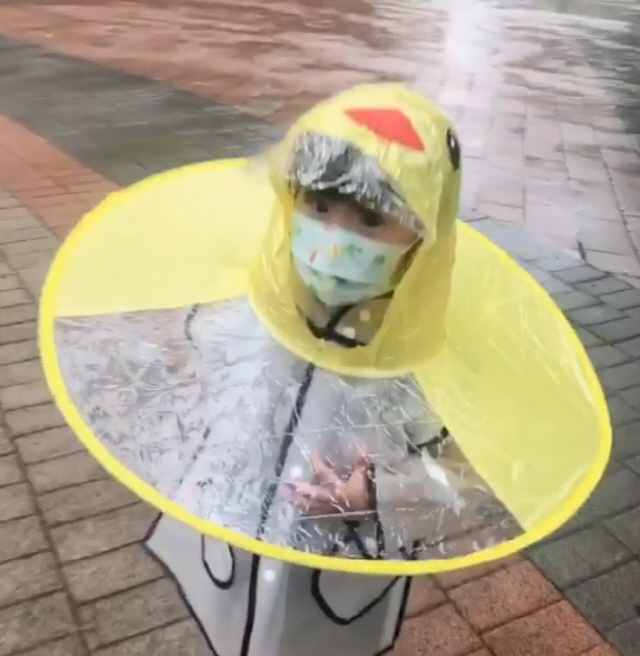 사진에는 딸 아인이 우비를 쓰고 미소를 짓고 있는 허민의 모습이 담겼다.