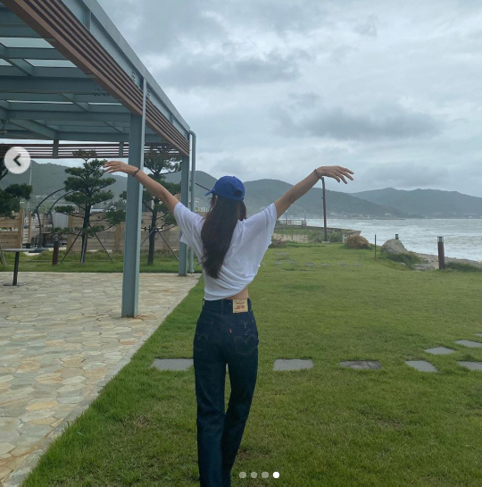 사진에는 흐린 날씨지만 바람을 즐기며 신나게 포즈를 취하고 있는 김성은의 모습이 담겼다.