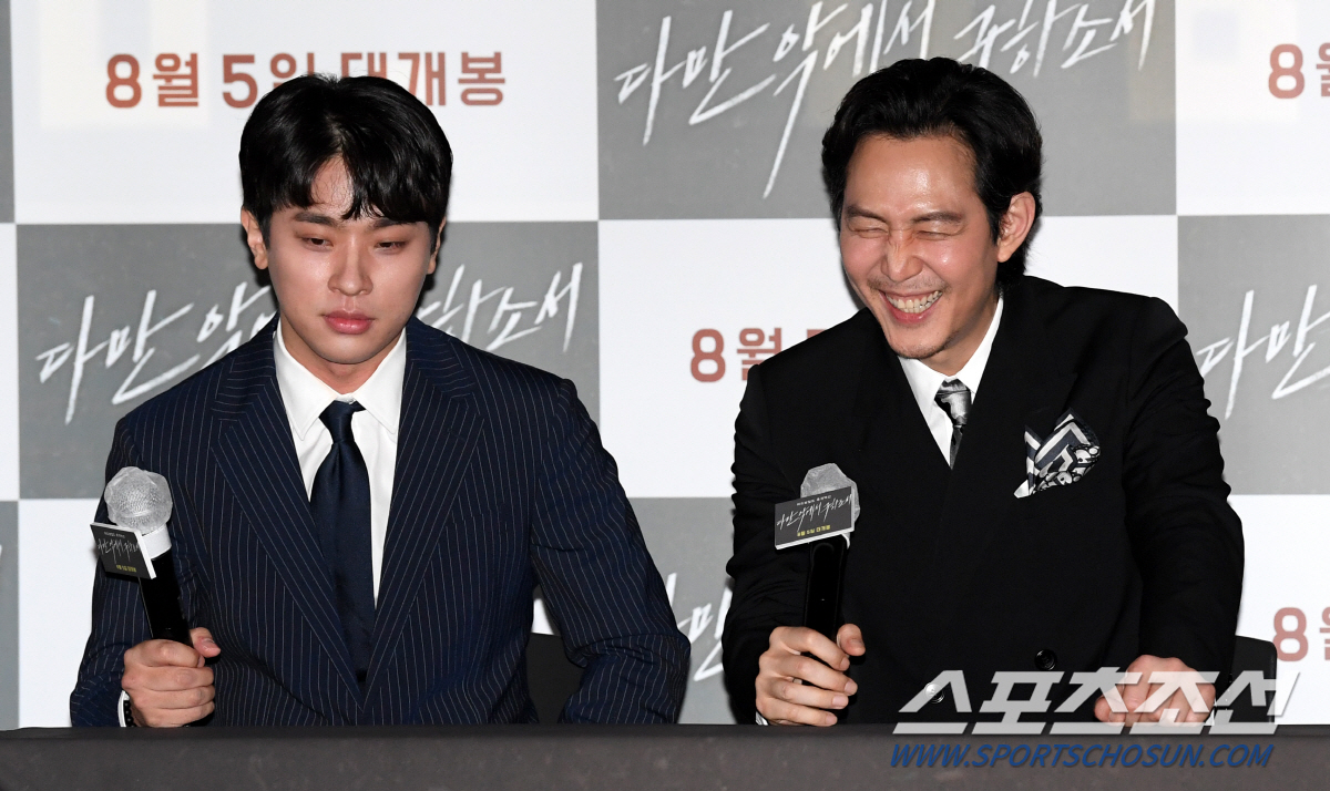 이정재와 오랜만에 재회하게 된 황정민은 "'신세계' 때 너무 행복하게 작업했던 기억이 있다. 이번 작품에서 또 만나게 돼 나한테는 큰 행운이었다. 어떤 식으로 재미있게 이 작품을 해낼 수 있을지 기대가 컸다"고 소회를 전했다. 이정재 역시 "작업을 했던 배우와 다시 만나는 기회는 거의 없는 것 같다. 황정민 형과 다시 만나 인연이다. 시나리오를 받았을 때 이미 황정민이 캐스팅됐었다. 작품을 결정하는 데 있어서 황정민의 역할이 꽤 많았다. 같이 작업하는데 있어 꽤 흥분됐다"고 답했다.