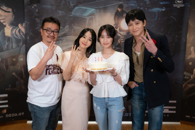 '반도'의 주역들은 300만 돌파를 기념해 관객들을 향한 감사의 마음을 담은 인증샷을 공개했다. 강동원, 이정현, 이레, 연상호 감독은 숫자 300 모양의 초가 꽂혀있는 케이크와 함께 300만 돌파를 자축했다.