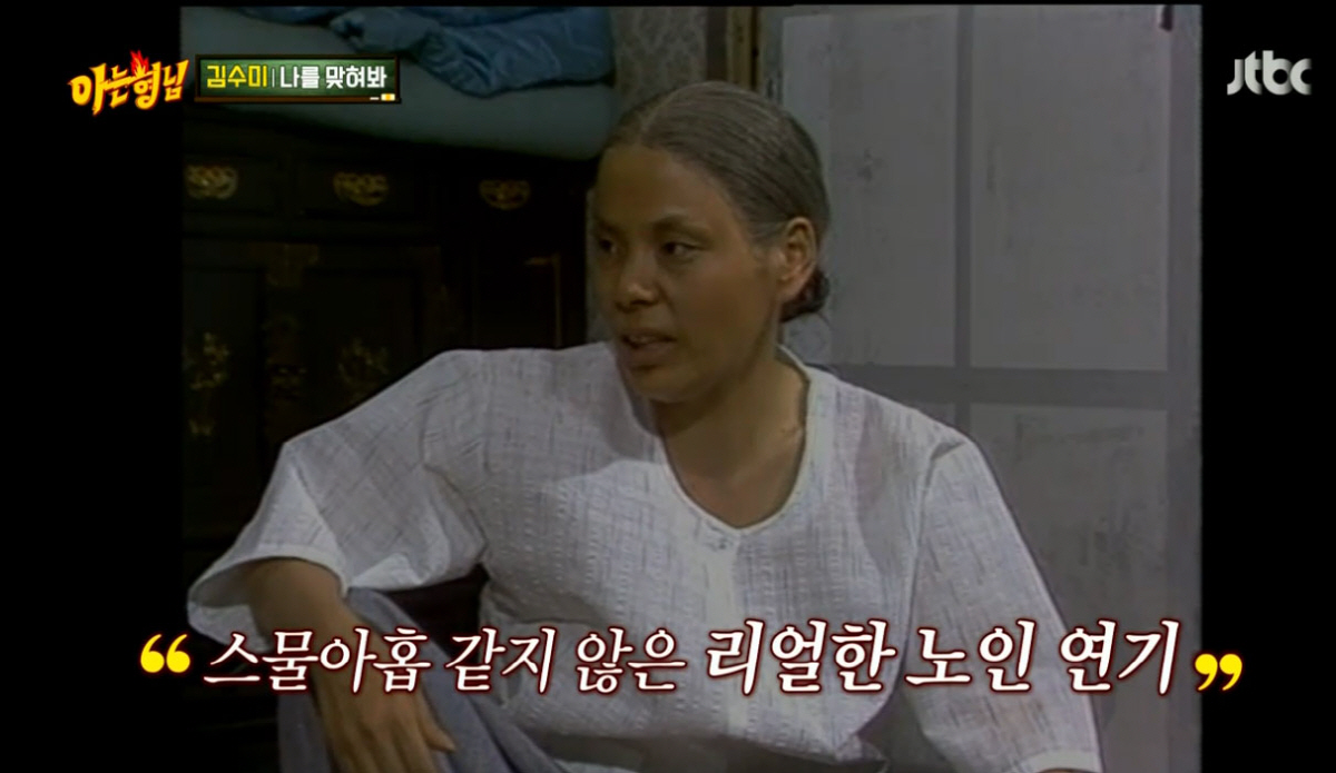 강호동이 "김수미는 아슬아슬하다는 느낌이 있다"며 "'1박2일' 게스트로 나오셔서 출연진 제작진까지 1대100을 모두 속이신 적이 있다"고 말했다. 당시 김수미가 폭포가 쏟아지는 물에 들어갔다가 심장마비를 일으켰고 100명의 사람들이 멘붕에 빠졌다. 119를 부르라고 난리치고 이수근은 실제로 울기도 했다. 하지만 실려가던 김수미가 "이거 뻥이야"라고 말하며 혼자 기획한 몰래카메라임을 밝혔던 것. 강호동은 "매니저도 모를 혼자만의 몰래카메라 기획에 가슴이 철렁했다"고 운을 뗐다.