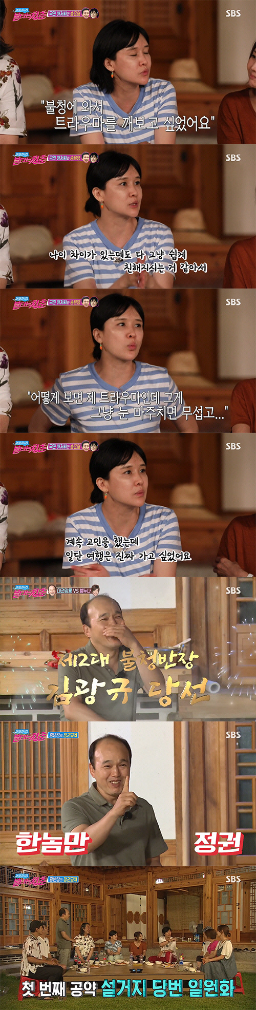 '불타는 청춘'의 출연제의를 받았을 때 느낌을 묻자 "내 연락처를 찾은 것이 신기했다. 기분은 좋았지만 지금은 때가 아닌 것 같아 고민하다가 거절했다"며 "하지만 여행을 정말 가고 싶었다"고 말했다. 그러면서 "사실 선배와 눈을 마주치면 겁이 난다. 트라우마가 있다. 그런데 이 프로그램을 보니까 나이가 있어도 다 친해지는 것 같더라. 그래서 트라우마를 깨고 싶었다"고 솔직히 말해 눈길을 끌었다.
