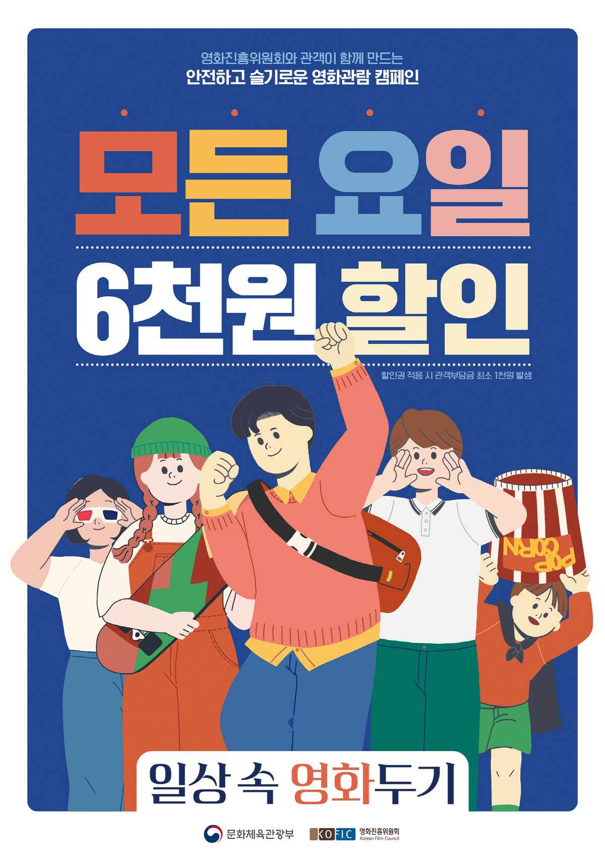[스포츠조선 조지영 기자] 영화진흥위원회가 극장과 관객이 함께 만드는 안전하고 슬기로운 영화관람 2차 캠페인 '일상 속 영화두기'를 독려하며 오는 11일 오전 10시부터 영화관 입장료 6000원 할인권을 배포한다.