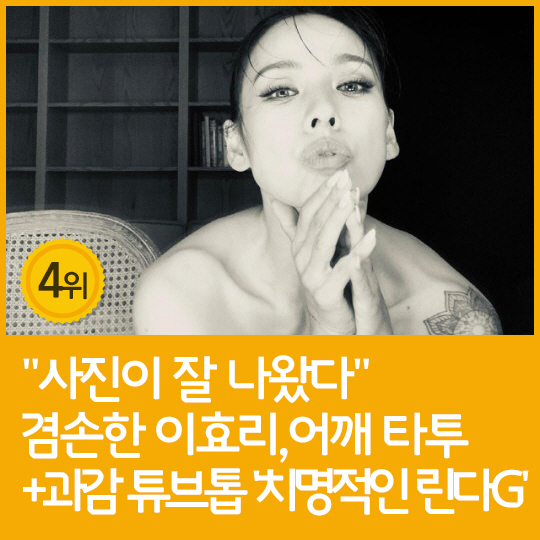 4위 : "사진이 잘 나왔다" 겸손한 이효리, 어깨 타투+과감 튜브톱