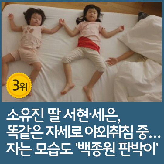 3위 : 소유진 딸 서현·세은, 똑같은 자세로 야외취침 중…'백종원 판박이'