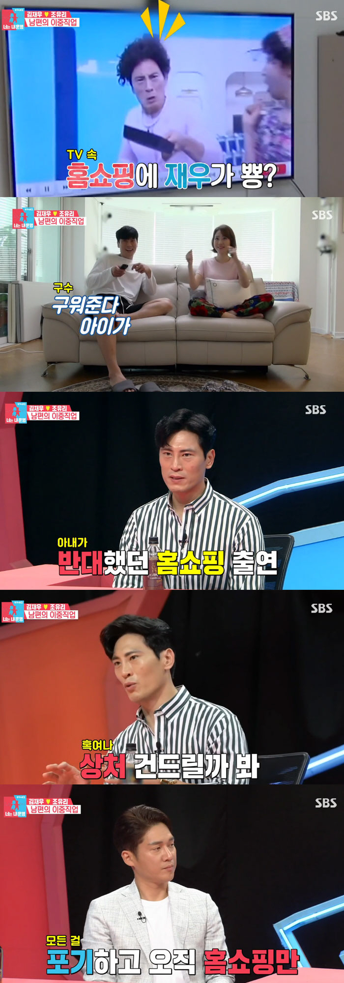 김재우는 "처음에 홈쇼핑을 선택 했을 때 아내가 걱정을 많이 했다"면서 "방송은 근황을 묻지 않냐. 근황을 말할 수가 없는 상황이었다. 말하면 아내한테 안 좋은 상황이 생길 것 같아서 하던 일을 모두다 내려놨다. 새로운 시도였다"고 털어놨다.