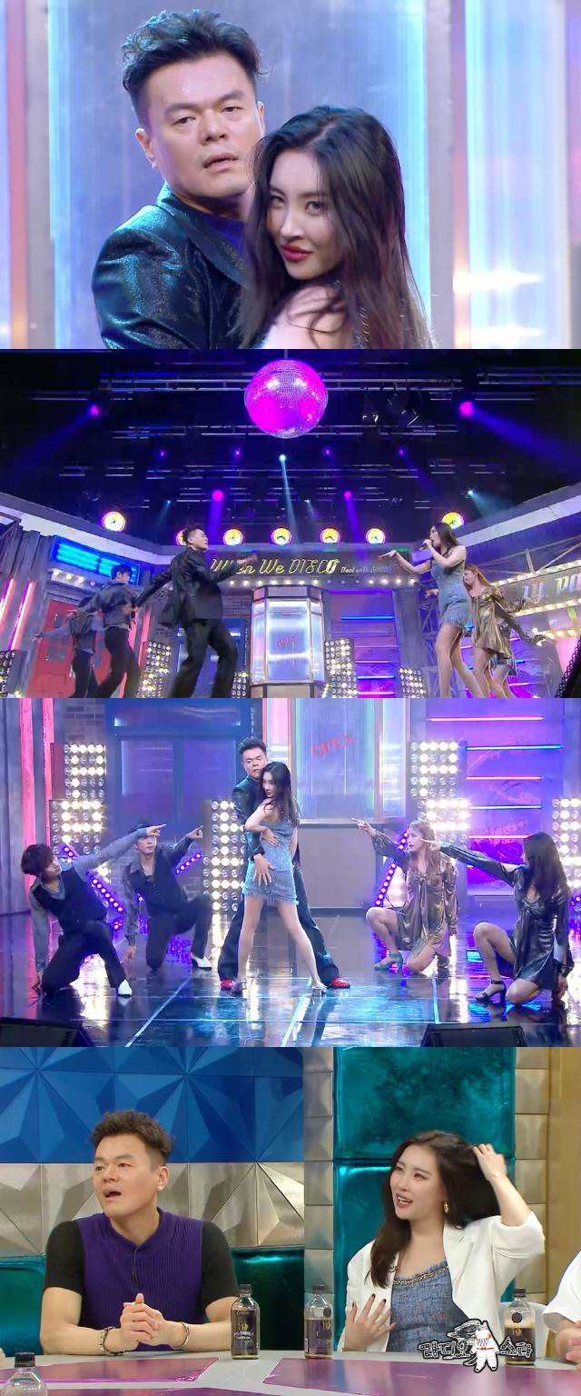무엇보다 박진영과 선미는 신곡 '웬 위 디스코' 무대를 '라디오스타'에서 최초 공개한다. '라디오스타' 제작진이 '댄싱킹' 박진영과 '댄싱퀸' 선미, 그리고 이들의 무대를 기다릴 시청자를 위해 디스코장을 연상케 하는 화려한 무대 세트를 준비한 가운데, 박진영과 선미는 눈을 뗄 수 없는 고품격 무대를 꾸며 '라스' MC들을 환호케 했다고 해 두 사람의 신곡 첫 무대를 더욱 기다려지게 만든다.