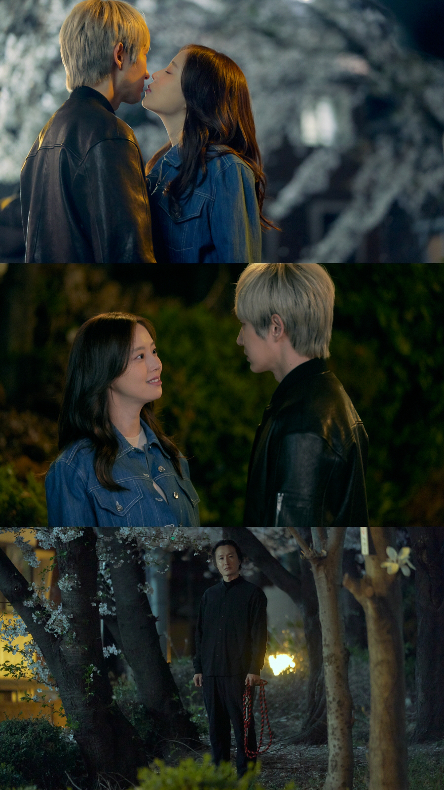'악의 꽃' 이준기·문채원, 벚꽃 아래 첫 입맞춤 포착...지켜보는 최병모 망령