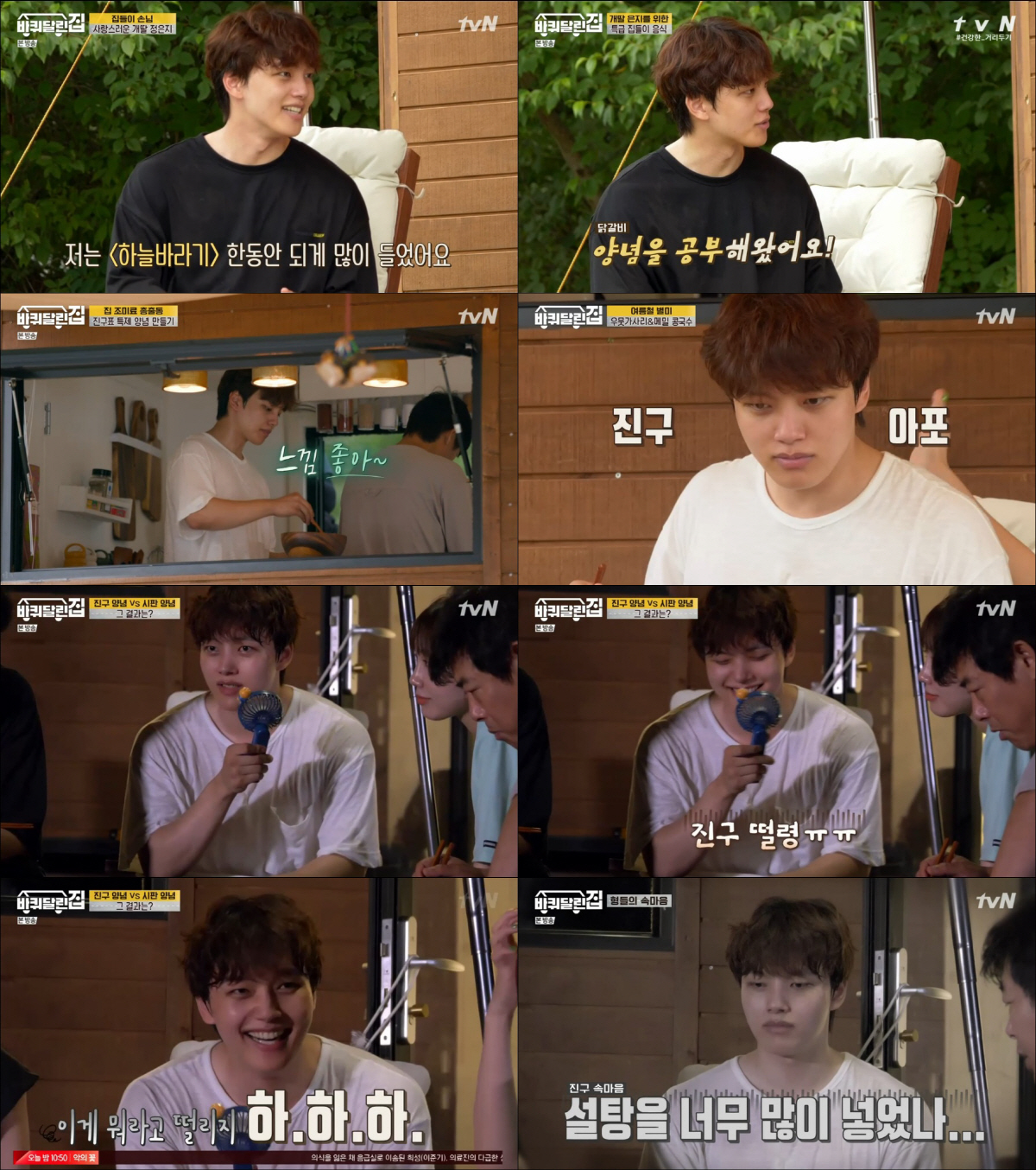 실수 연발의 허당 막내에서 이제는 '소스 장인'으로 거듭난 여진구의 활약도 계속됐다. 점심으로 숯불 닭갈비가 확정되자 양념을 공부해왔다며 비장하게 나선 여진구. 걱정하는 성동일과 달리, 김희원은 '셰프'라 치켜세우며 무한 신뢰를 보냈다. 김희원은 지난 여행에서 자신의 첫 요리인 국물떡볶이가 "생선 없이도 민물 매운탕 맛이 난다"라는 신박한 평가를 받은 것에 상처를 받았던 것. 속상한 자신을 달래주기 위해 계속해서 맛을 칭찬하는 속 깊은 면모를 보인 여진구에 감동받은 김희원은 '요리 칭찬 품앗이'를 몸소 실천, '웃픈' 형제애로 주위를 폭소케 했다.