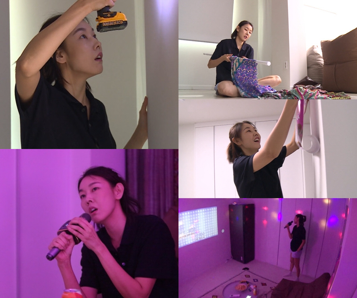 얼마 전 새 집으로 이사를 한 한혜진은 꿈의 공간이었던 '운동 방'에 이어, 노래방까지 손수 만들어낸다. 미러볼과 주전부리, 맥주로 가득한 음료 냉장고까지 등장, 노래방 감성을 완벽하게 재현한 '달코노(달심 코인 노래방)'를 완성한다고.