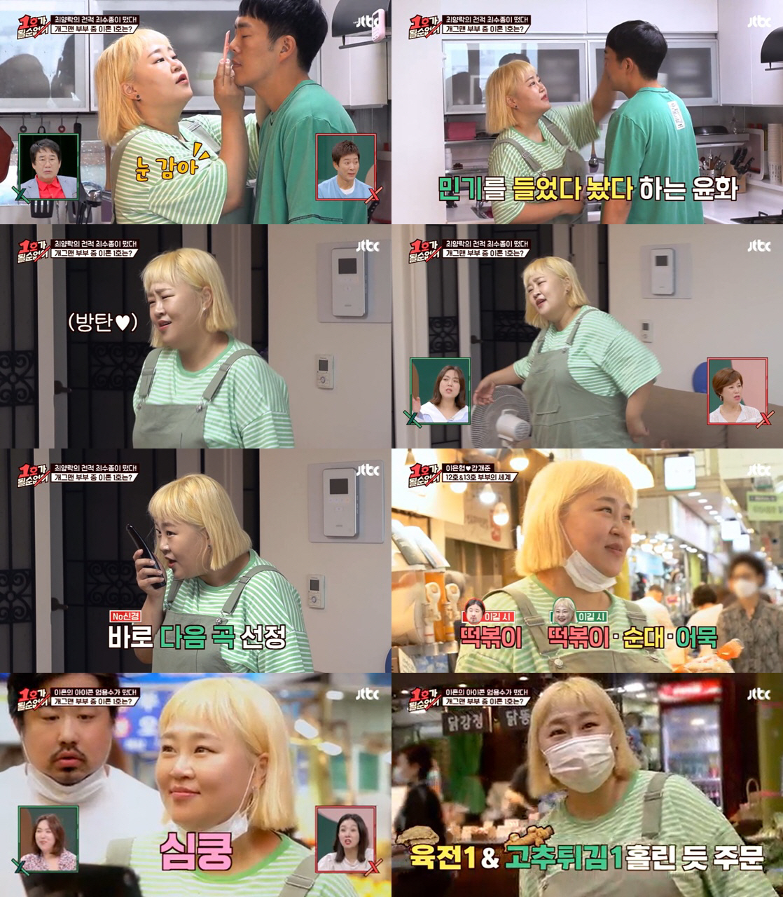 열정적인 아이디어 회의를 마친 홍윤화는 허기진 배를 달래기 위해 고기를 굽기로 했다. 고기를 사러 근처 시장을 찾은 홍윤화는 꽈배기, 떡볶이, 육전 집을 차례대로 방문, 어느 가게 하나 놓치지 않는 야무진 시장 먹방을 선보였다. 또한, 강재준이 떡볶이를 먹다가 옷에 국물을 흘리자 난감해하다가도 "뭐 그린 것처럼 하자!"라며 이쑤시개에 떡볶이 국물을 묻혀 그림을 그리는 해맑음으로 보는 이들을 폭소케 했다.