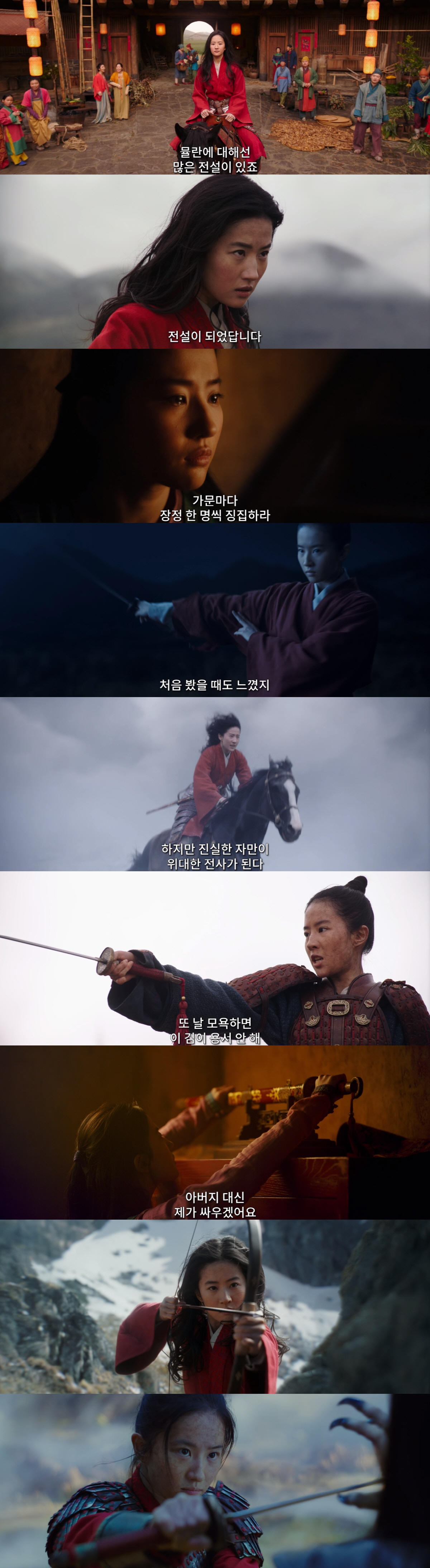 이어 텅 장군은 남장을 한 채 군대에 자원한 뮬란을 알아보는 듯한 말을 남기며 긴장감을 높인다. 홍휘 또한 미소 짓는 얼굴로 뮬란과 갈등을 형성하고, 황제는 백성을 지키기 위해 결단을 내리는 모습을 보이는 등 각각의 캐릭터를 드러내고 있어 '뮬란'에서 펼쳐낼 그들의 이야기를 더욱 궁금케 한다.