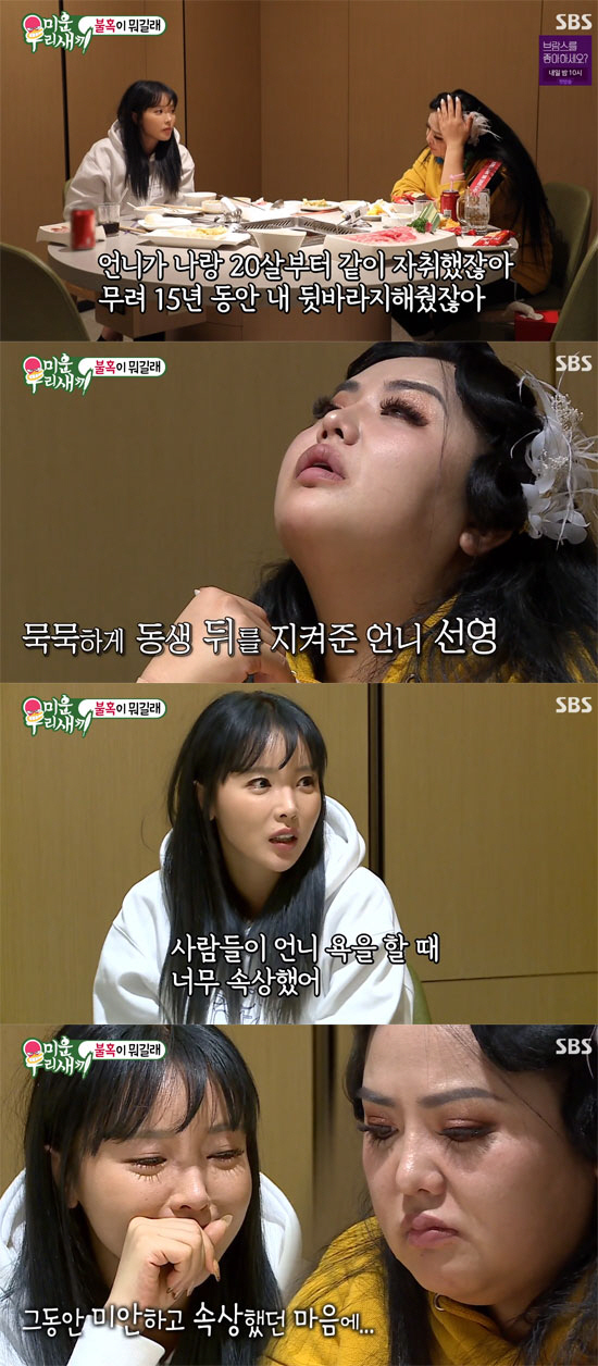 특히 홍선영은 "'미우새' 정말 하기 싫었다. 내가 사는게 그냥 좋은데, 사람들이 TV에 내가 나오면 욕할지 알았다. 그래서 별로 안 나가고 싶었다"고 털어놓았다. 이에 홍진영은 "결국 나 때문에 한다고 했다. 언니가 욕먹을 때마다 나때문인건가 항상 미안했다. 언니라는 사람을 잘 모르고 욕을 할 때 제일 속상했다"고 말하며 눈물을 터뜨렸다.