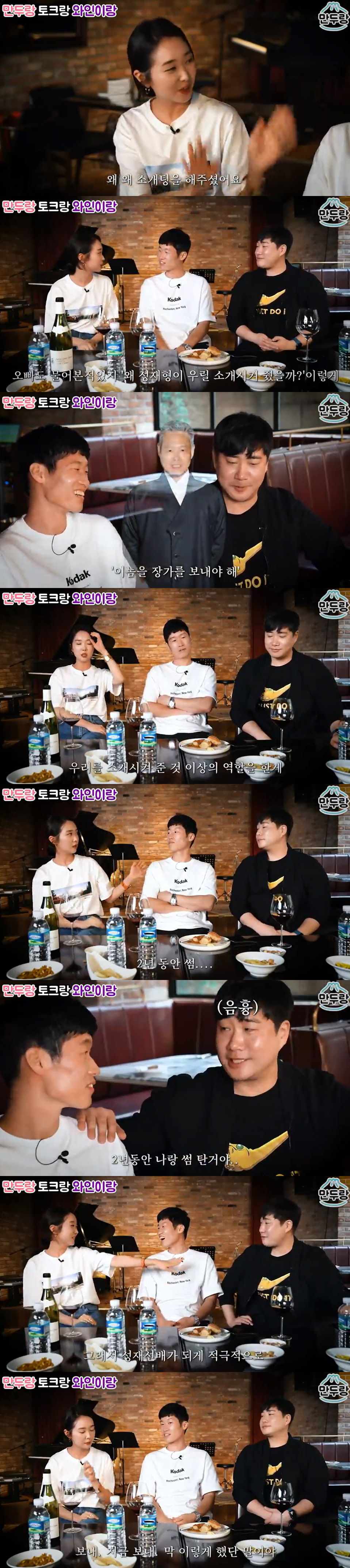 이에 배성재는 "김민지가 막내였을 때 우연히 모니터를 봤는데 박지성 기사를 보고 있더라. 그때 김환이 지나가면서 나한테 '형이 소개 좀 시켜줘'라고 하더라. (당시에) 나는 박지성을 개인적으로 모르는데. 그러다 1~2주 뒤 박지성 아버님과 식사를 함께할 자리가 생겨 만나게 됐다. 아버님이 박지성 결혼에 대해 걱정하시더라. 그때 괜찮은 사람이 있다고 하면서 김민지를 얘기했다. 아버님이 시즌 말미쯤에 두 사람이 만나게 하면 좋지 않을까? 이런 식으로 얘기하셨다"고 설명했다.