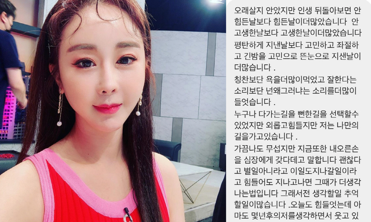 이어 "칭찬보다 욕을 더 많이 먹었고, 잘한다는 소리보단 넌 왜 그러냐는 소리를 더 많이 들었다"며 "누구나 다 가는 길을 뻔한 길을 선택할 수 있었지만 외롭고 힘들지만 나는 나만의 길을 가고 있다"고 덧붙였다.