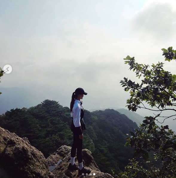 사진에는 청계산을 등산하며 계곡을 구경하고 정상에 서서 경치를 즐기는 이시영의 모습이 담겼다.
