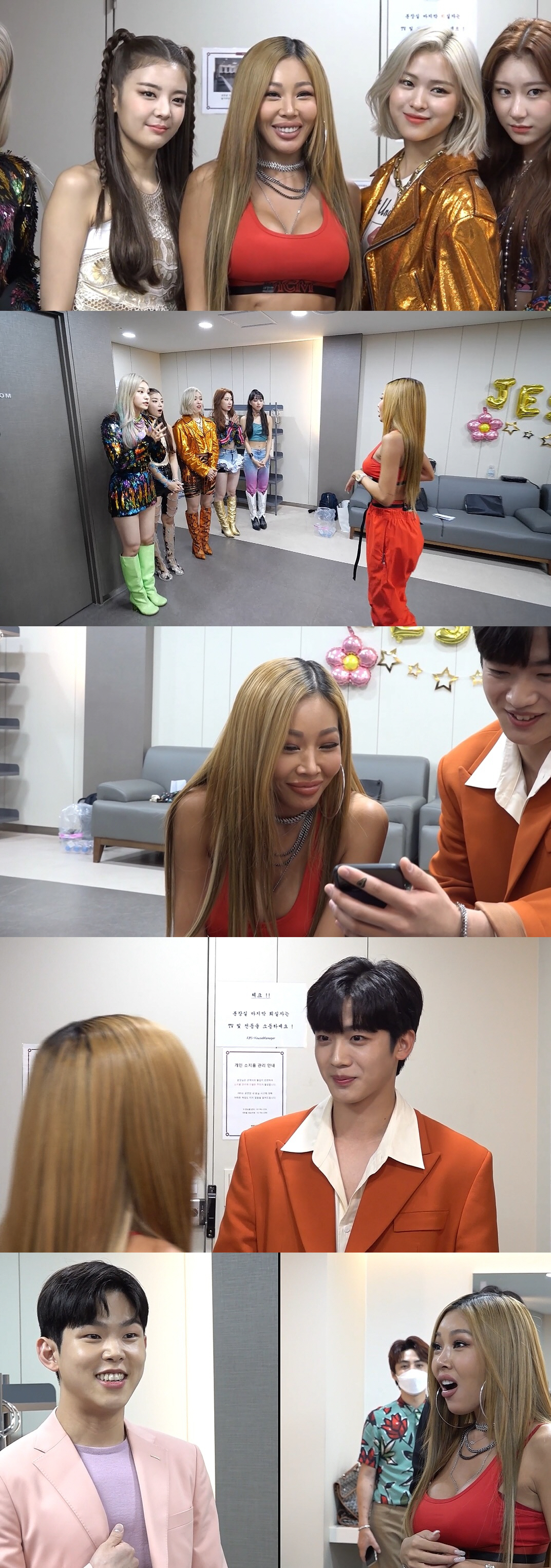 뒤이어 제시의 대기실을 습격한 손님은 김요한이었다. 제시는 김요한의 깜찍한 포인트 안무를 함께 추며 의외의 남매 케미스트리를 발산했다는 후문. 제시는 부끄러워하면서도 능숙하게 애교 안무를 소화해 김요한을 놀라게 했다고.