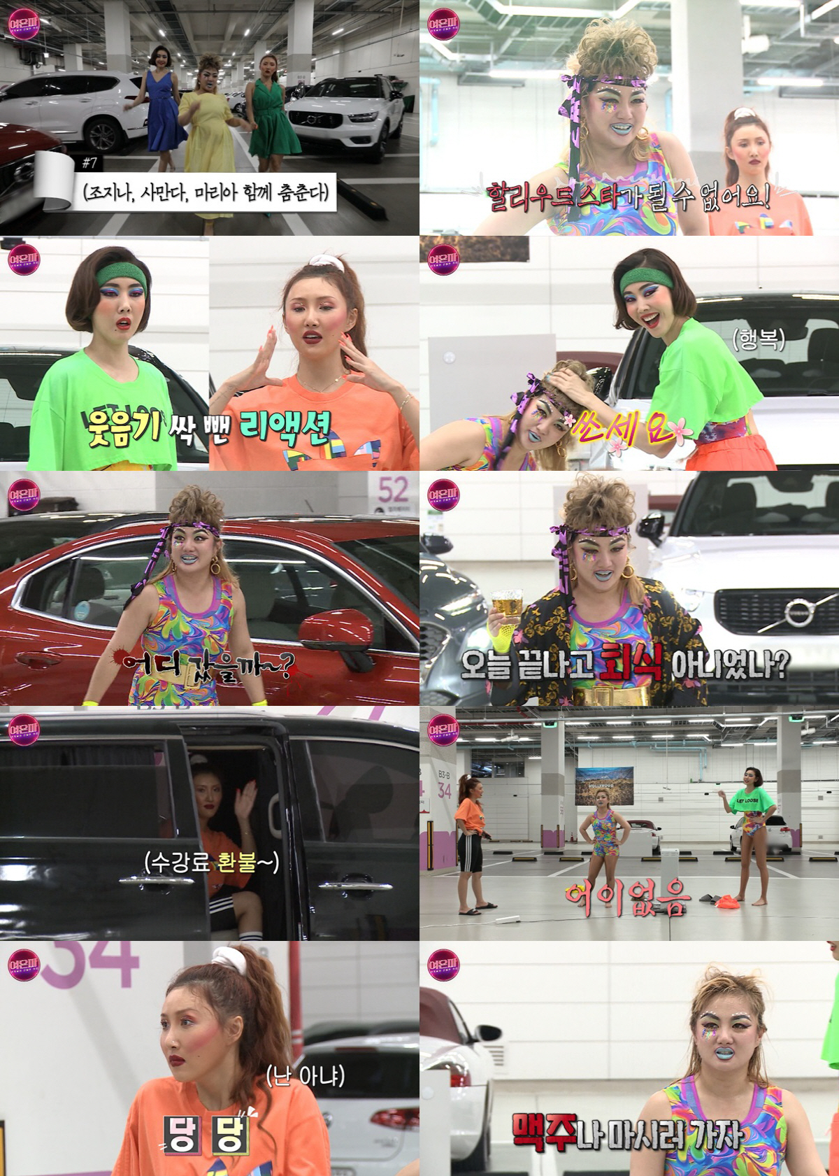뿐만 아니라 하드한 동작을 이어가겠다며 얼굴을 마구 구기는 박나래(조지나)를 향해 한혜진(사만다)은 눈으로 욕을 하다못해 화사(마리아)와 탈주를 시도, 살벌한 숨바꼭질을 벌인다. 여기에 박나래(조지나)가 낯익은 가운을 꺼내 입으며 부캐 아가저씨를 소환하자 두 사람은 다시 한번 수강을 철회, 이를 눈치챈 박나래(조지나)는 "오늘 끝나고 회식 아니었나?"라고 농담을 던져 유쾌한 상황극을 연출한다.
