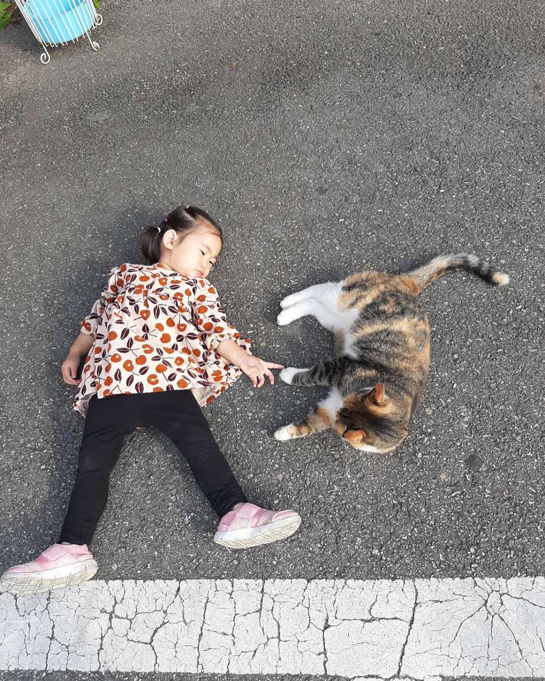 함소원은 25일 자신의 인스타그램을 통해 "혜정이 친구 야옹이"라는 글과 함께 한 장의 사진을 게재했다. 공개된 사진 속에는 도로에 누워 고양이를 바라보고 있는 혜정의 모습이 담겼다. 혜정이는 손가락을 내밀어 고양이의 발을 잡고 있는 모습. 고양이와 교감하는 혜정이의 순수한 모습이 돋보인다. 또한 고양이만큼 작은 모습은 랜선 이모들의 귀여움을 자아냈다.