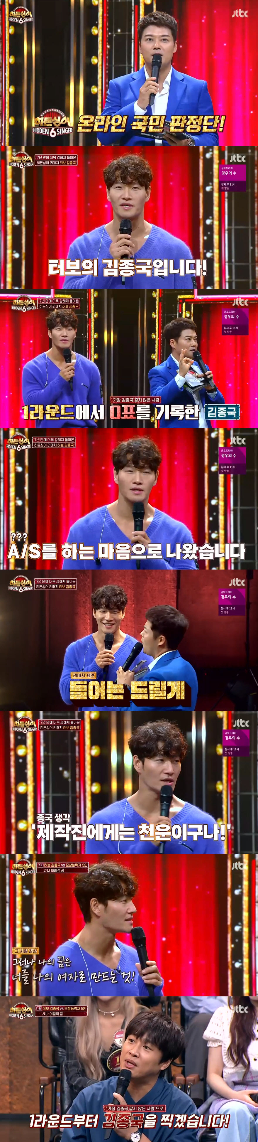 앞서 김종국은 7년 전 '히든싱어' 시즌1에 출연했을 때 4라운드에서 79표를 받으며 여유롭게 최종 우승을 차지한 바 있다. 게다가 당시 1라운드 '가장 김종국 같지 않은 사람'을 뽑는 투표에서 0표를 받아 비교가 불가능한 원조가수의 실력을 입증했다.