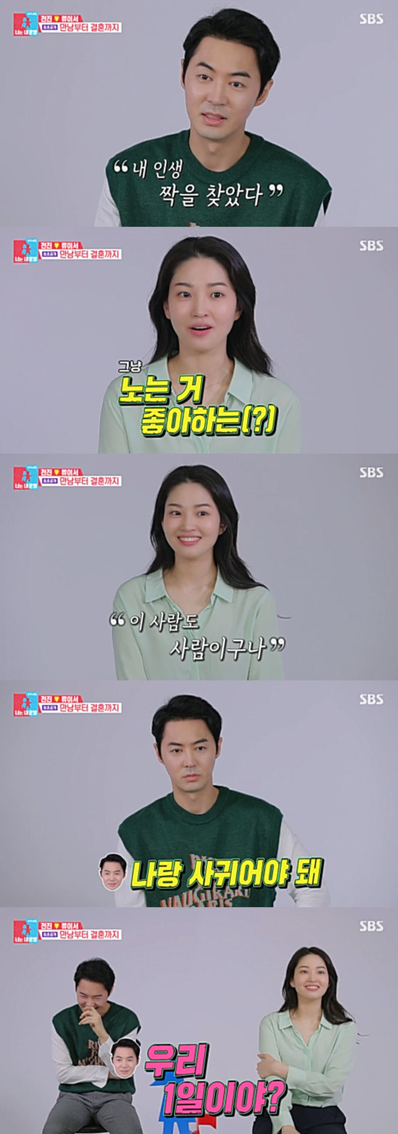 지인 모임에서 만난 뒤 류이서에게 적극적인 애정 공세를 퍼부었다는 전진. 그는 아내와 사귀기 전부터 "결혼해서 빨리 아기 낳자"고 폭탄 발언한 사실이 전해져 놀라움을 안겼다. 실제 전진은 24시간 내내 아내에게서 떨어질 줄 모르는 역대급 '아내 껌딱지'임을 인증하기도 해 눈길을 끌었다.