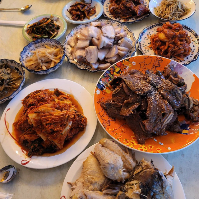 사진에는 갈비부터 백숙, 수육, 각종 나물과 반찬 등이 식탁을 가득 채운 모습이 담겨 있다. 추석을 맞아 풍성하게 채워진 식탁의 풍경이 보는 이들의 침샘을 자극한다.