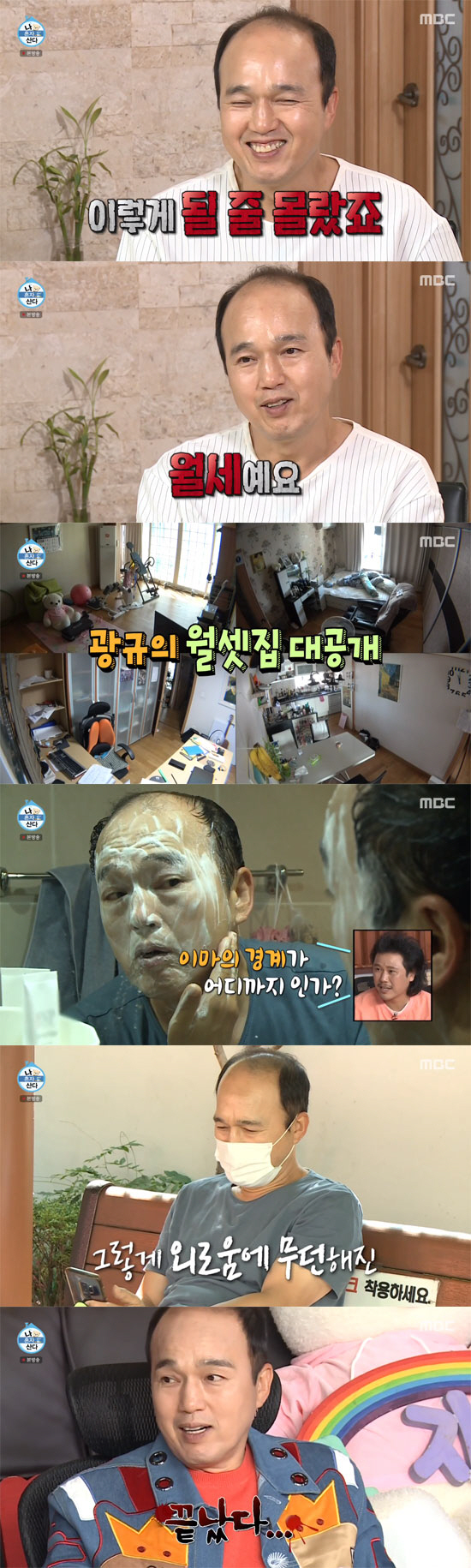 김광규는 22년 째 변함없이 짠내 가득한 홀로 라이프를 유지하고 있다. 그는 "나 혼자 산다 그만두면 결혼할 줄 알았다. 분하다"라며 여전히 혼자임을 밝혔다. 이어 강남으로 이사를 온 사실을 밝히며, "내집마련이 목표였지만, 월세다. 생활이 더 빡빡해졌고 화병이 많이 났다"고 말해 안타까움을 안겼다. 그는 "간이 작아서 대출을 못 받았고, 집값이 떨어질 줄 알았다"라며 "전세 사기 보다 더 상처가 크다. 전세 사기 당할 땐 1억이 조금 안 되는 돈이 있었는데, 지금은 10억이다"라고 덧붙였다.