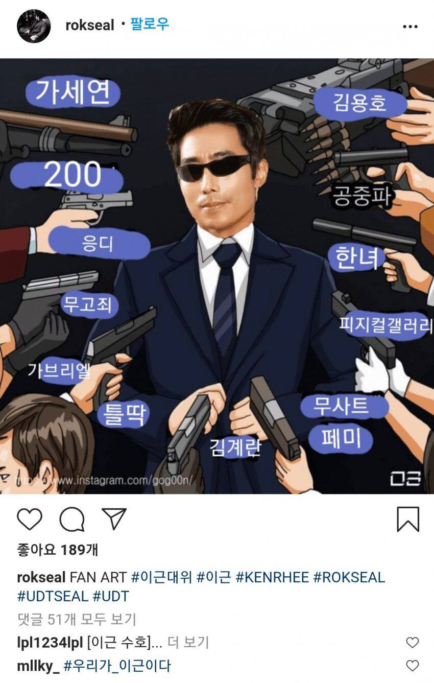 그때문인지 이근은 해당 사진만 게재 직후 삭제했다. 네티즌들은 빛의 속도로 삭제한다는 말에서 나온 신조어 '빛삭'을 언급하며 "멘탈 하나는 인정한다"고 반응하고 있다.