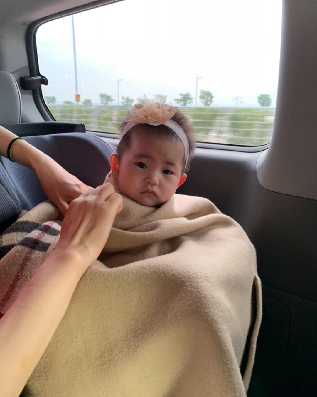 사진에는 아기 혜정이가 담요에 싸여 얼굴만 빼꼼하게 내밀고 있는 귀여운 모습이 담겼다. 또 다른 사진에서는 함소원의 남편 진화와 딸 혜정이가 똑같은 표정과 포즈로 '붕어빵 부녀'의 비주얼을 뽐내고 있다.