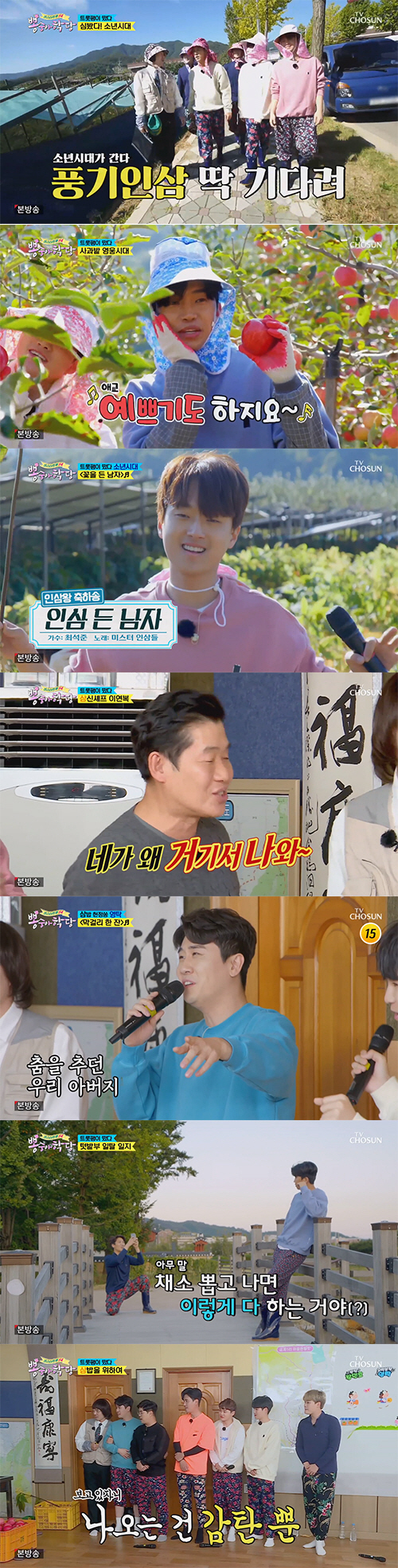 인삼을 캐는 사이 영웅시대 팀원들은 사과밭으로 향했다. 영웅시대 팀도 사장님에게 사과를 따는 법을 배운 후 사과 따기에 돌입했다. 이때 임영웅은 프로 유튜버답게 사과 먹방 ASMR까지 도전해 웃음을 자아냈다.