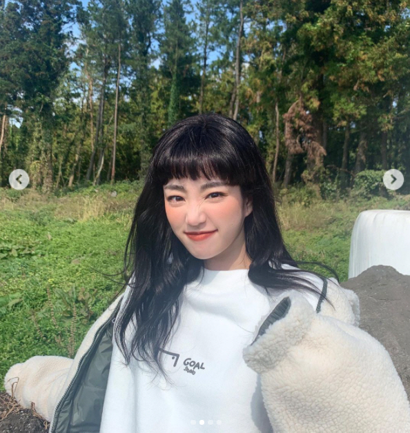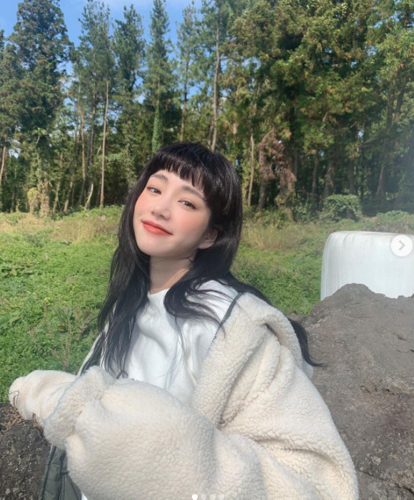 눈썹이 보이는 발랄한 분위기의 앞머리를 자른 이유비는 동그렇게 큰 눈과 발그레한 두 뺨으로 귀여운 매력을 뽐냈다.