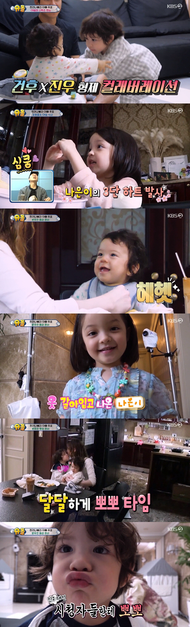 [스포츠조선 조윤선 기자] '슈돌' 나은이, 건후가 동생 진우와 함께 '찐 건나블리' 완전체로 돌아왔다.