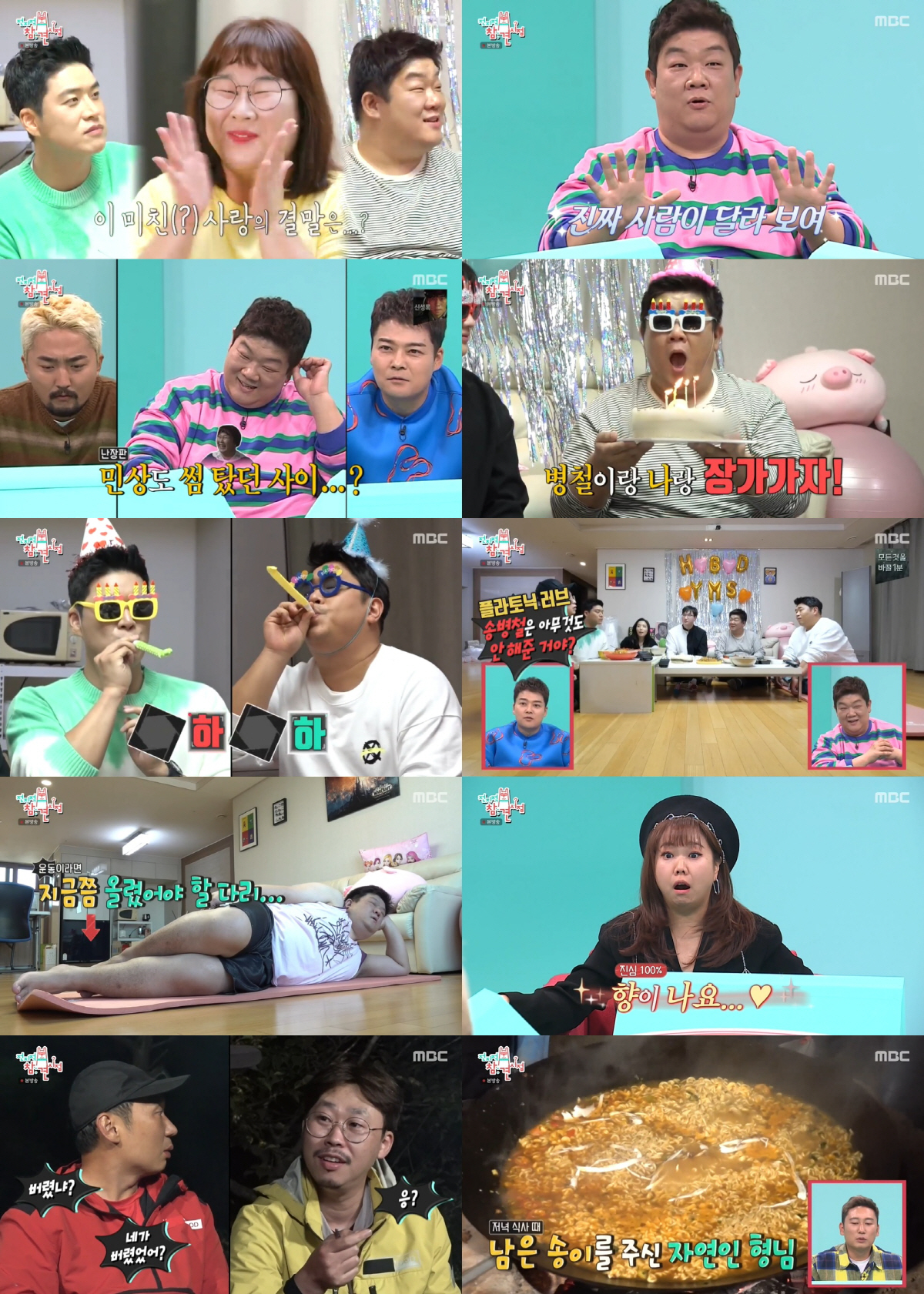 뒤이어 공개된 유민상의 일상은 놀라움의 연속이었다. 스타일리스트와 매니저가 유민상의 깜짝 생일파티를 준비하다 유통기한이 8년이나 지난 식용유가 발굴된 것. 우여곡절 끝에 생일파티 준비가 끝났고, 흥망진창 저 세상 텐션 파티가 이어졌다. 개그맨 문세윤, 박휘순, 송병철이 총출동해 거침없는 입담쇼를 펼쳤다.