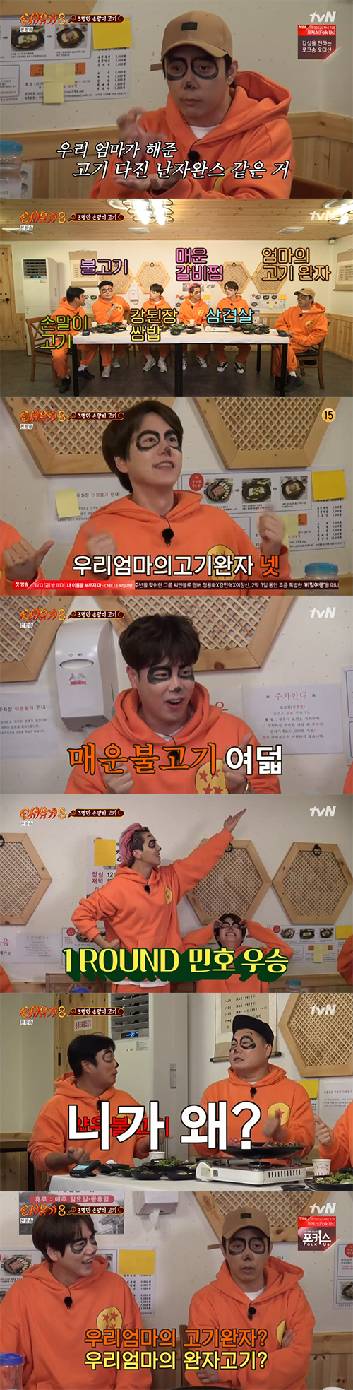 1라운드는 '매운갈비찜' 민호가 '삼겹살' 규현을 꺾고 점심 식사에 당첨됐다. 2라운드는 규현이 '얇은 불고기'를 공격했지만 '손말이 고기' 이수근이 강호동의 '얇은 불고기'를 사칭(?)해 두 명이 탈락하는 모습을 보였다. 2라운드는 모두의 예상을 깨고 은지원의 '우리 엄마의 고기완자'가 우승했다. 3라운드는 이수근의 '손말이 고기'와 규현의 '삼겹살'이 대결을 펼쳤고, 엄청난 스피드를 올리던 이수근이 박자를 놓치는 바람에 규현이 우승을 차지했다.