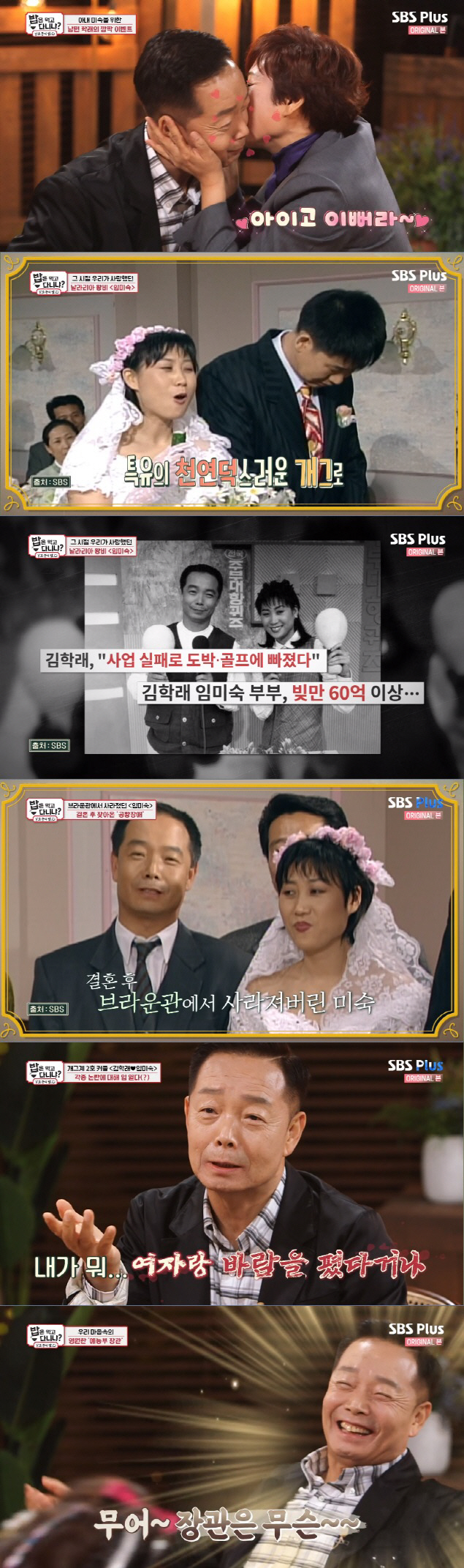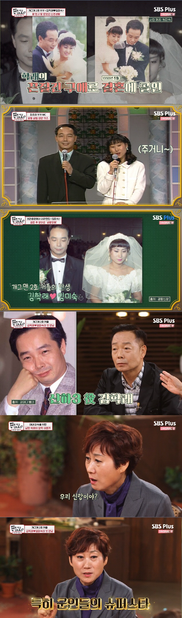 개그맨 선후배로 만난 이들은 김학래의 끈질긴 구애로 인해 연인이 됐다고 비하인드 스토리를 전했다. 그리고 당시 김학래가 쓴 러브레터도 공개됐다. '주님! 사랑은 어떤 것입니까? 이것은 사랑이 아닙니까? 달콤한 키스 한 번을 하고 싶어 몇날 며칠을 참고 기다리려다 겨우 용기를 내서 한 번 하는 바보스러운. 사랑하는 사람을 알기 전에 많은 여인을 만났습니다. 사랑하는 사람한테는 전혀 그렇지 않은 것처럼 내숭을 떨었습니다. 미숙이 건강하게 해주세요'하는 절절한 내용이 담겼다.