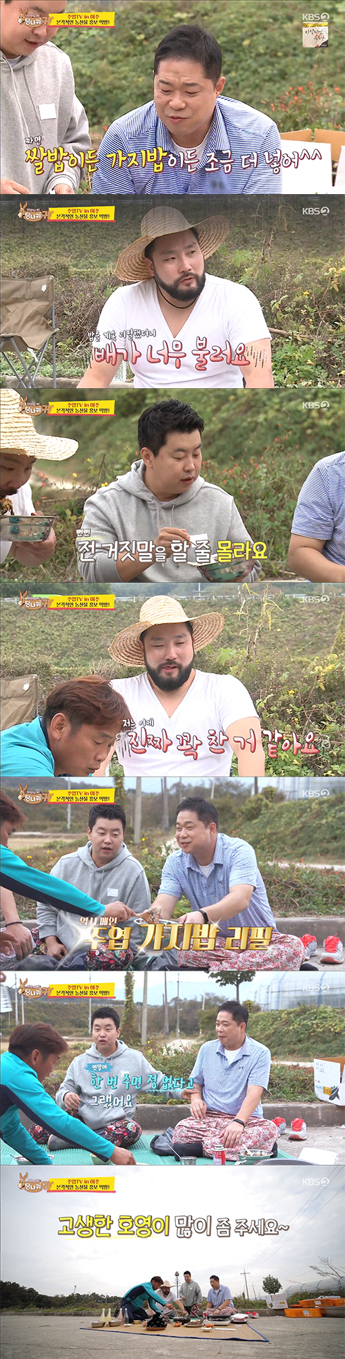 이때 엄청난 양의 새참이 도착했다. 일한 현주엽 일행을 위해 농민들은 여주 쌀과 가지로 만든 피자, 김밥, 비빔밥과 현주엽 전용 한우까지 더해진 푸짐한 새참이 마련한 것.