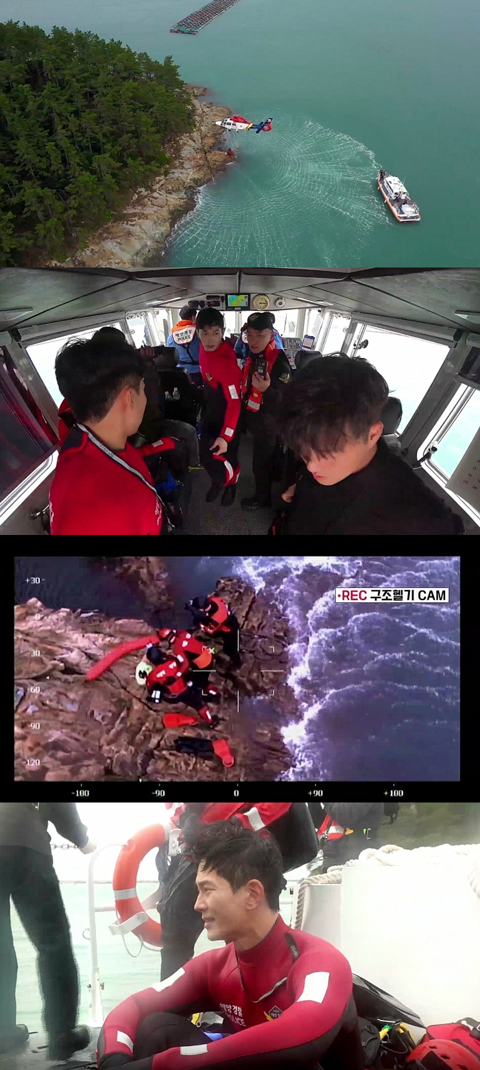 각종 난관을 헤치고 어렵사리 무인도 사고 현장에 도착한 연안구조정. 온주완은 다른 구조대원들과 함께 바다로 풍덩 뛰어들었다고 한다. 실제로 학창 시절 구 대표 수영 선수였던 온주완은 수준급 수영 실력의 소유자라고. 부상당한 고립자의 안전한 구조가 절대적인 일촉즉발의 상황. 순간 하늘에는 구조 헬기까지 출동해 또 한번 모두를 놀라게 했다는 전언이다.