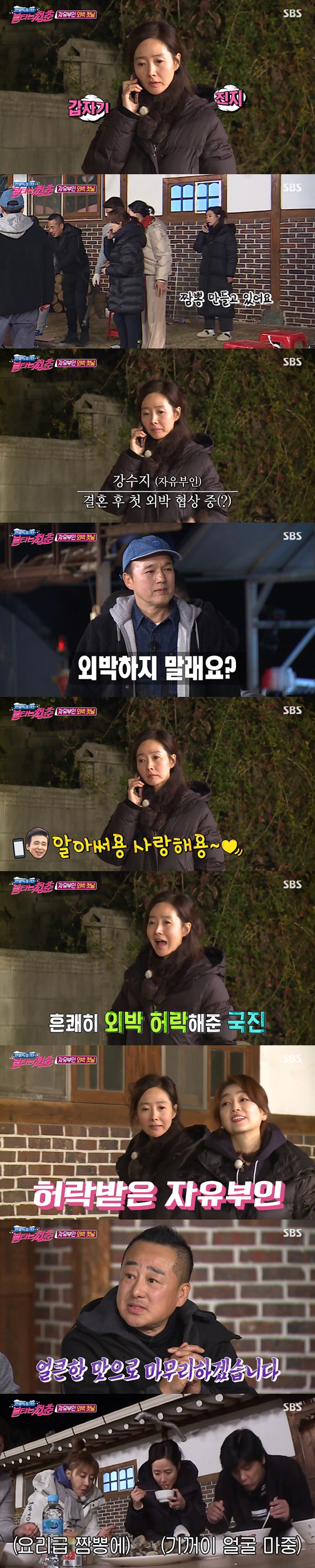 [스포츠조선닷컴 정유나 기자] '불타는 청춘' 강수지가 결혼 후 첫 외박 허락받았다.