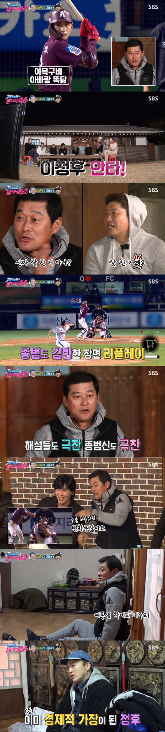 결국 청춘들은 모두 모여 이정후가 등판한 경기를 봤다. 이때 이정후가 타석에 올랐고, 청춘들은 "잘생기고 다리도 길다"며 감탄했다. 이종범은 다소 긴장된 모습으로 아들의 경기를 지켜봤다. 마지막 절호의 기회의 순간이 왔고, 이정후는 보란듯이 안타를 날렸다. 해설들은 이정후의 안타를 극찬했고, 이종범도 "너무 잘 쳤다"면서 아들의 실력을 칭찬했다.