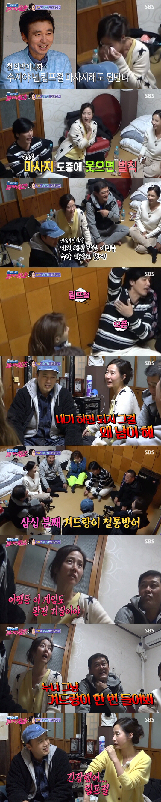 저녁 식사 후 청춘들은 방에 모여 소소한 얘기를 나눴다. 이때 청춘들은 서로의 겨드랑이를 웃지 않고 15초간 치는 게임인 '림프절 마사지 운동 게임'을 하자고 말했다. 하지만 게임 설명을 듣던 강수지는 "이런 게임을 누가 하라고 그랬냐. 완전 저질 게임이다. 너무 웃겨서 눈물난다. 난 못할 것 같다"라면서 당황해 해 웃음을 안겼다.