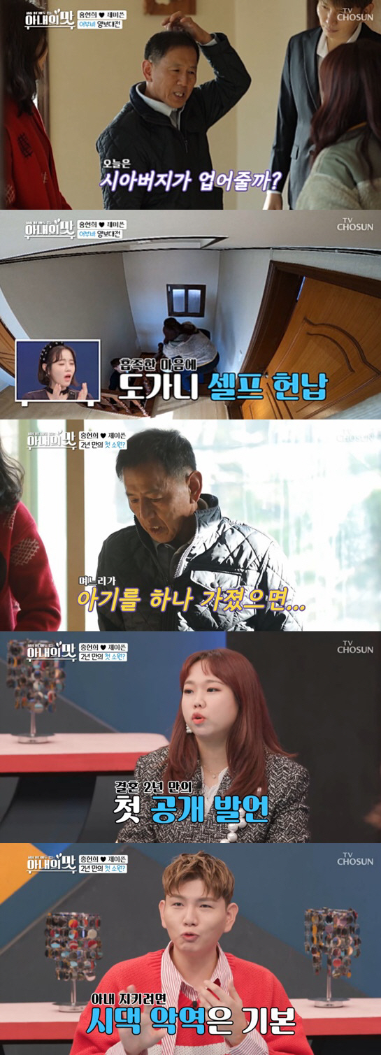아버지의 소원 이야기도 나왔다. 아버지는 "사업이 잘 됐으면 좋겠고 며느리가 아기 하나 가졌으면 좋겠다"고 조심스럽게 이야기를 꺼냈다. 결혼 2년 만에 처음 꺼내는 이야기라고. 이에 스튜디오에서 "아버님이 배려를 많이 하셨던 것"이라고 이야기했고, 제이쓴은 "제가 부모님이랑 싸우고 결혼했다"고 말해 모두를 놀라게 했다.