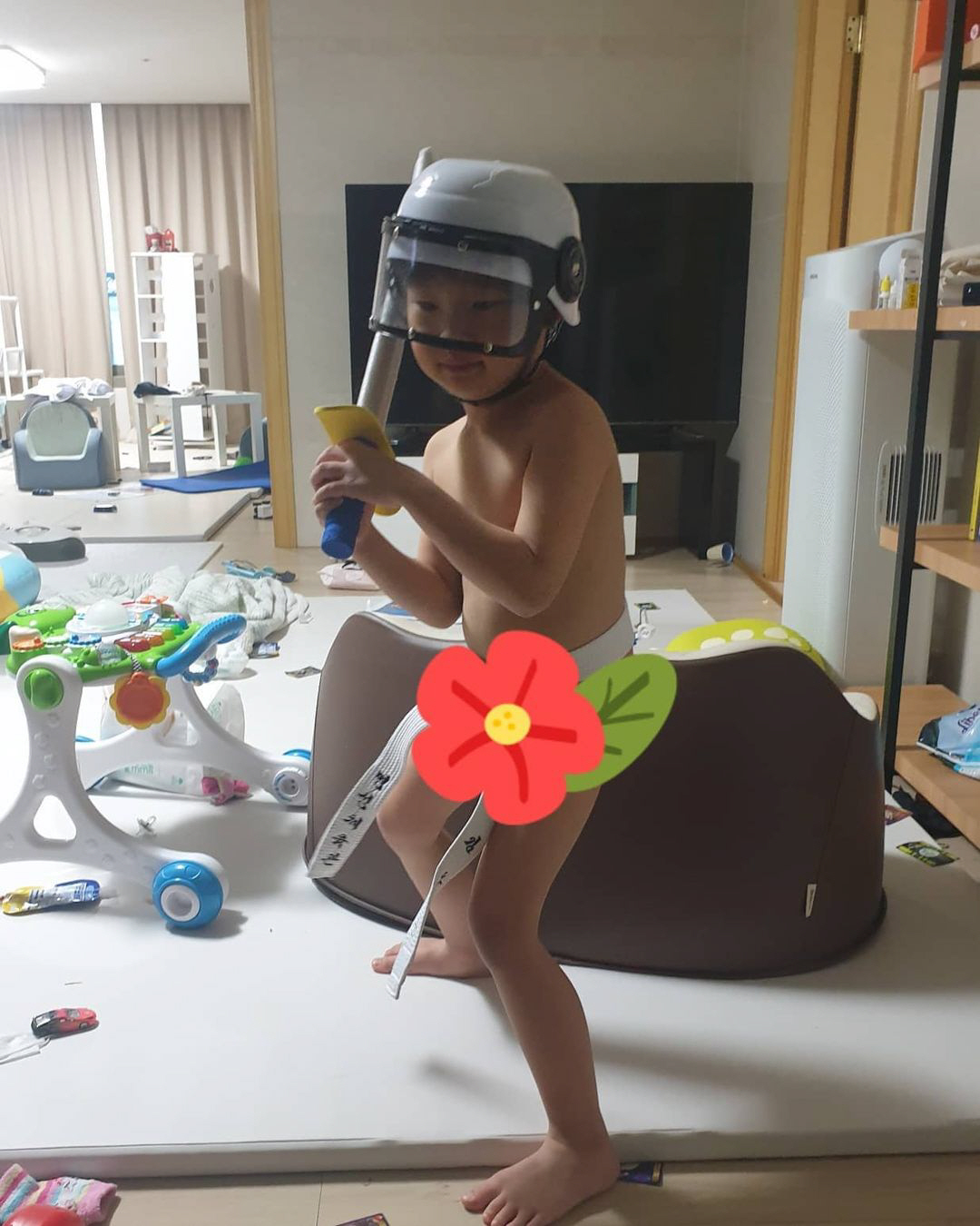 정주리는 2일 자신의 인스타그램을 통해 "합기도를 다니기 시작한 도윤. 그리 좋은지 집에서도 저리 띠를 두르고 있네요…집 꼴은 어쩔?"이라는 글과 함께 여러 장의 사진을 게재했다. 공개된 사진 속에는 합기도 도복을 입고 있는 아들 도윤 군의 모습이 담겼다. 합기도 도복이 좋은 듯 환하게 웃고 있는 도윤 군은 집에서도 맨몸에 띠를 두르고 있는 모습. 도윤 군의 귀여운 모습 뒤엔 잔뜩 어질러진 집 풍경이 보인다. 아들 셋을 두고 있는 정주리의 현실 일상이 엿보인다. 정주리는 SNS를 통해 종종 어질러진 집을 공개한 바 있다. 특히 지난 7월에는 tvN '신박한 정리'에 출연해 현실 육아 일상을 공개해 많은 응원을 받기도 했다.