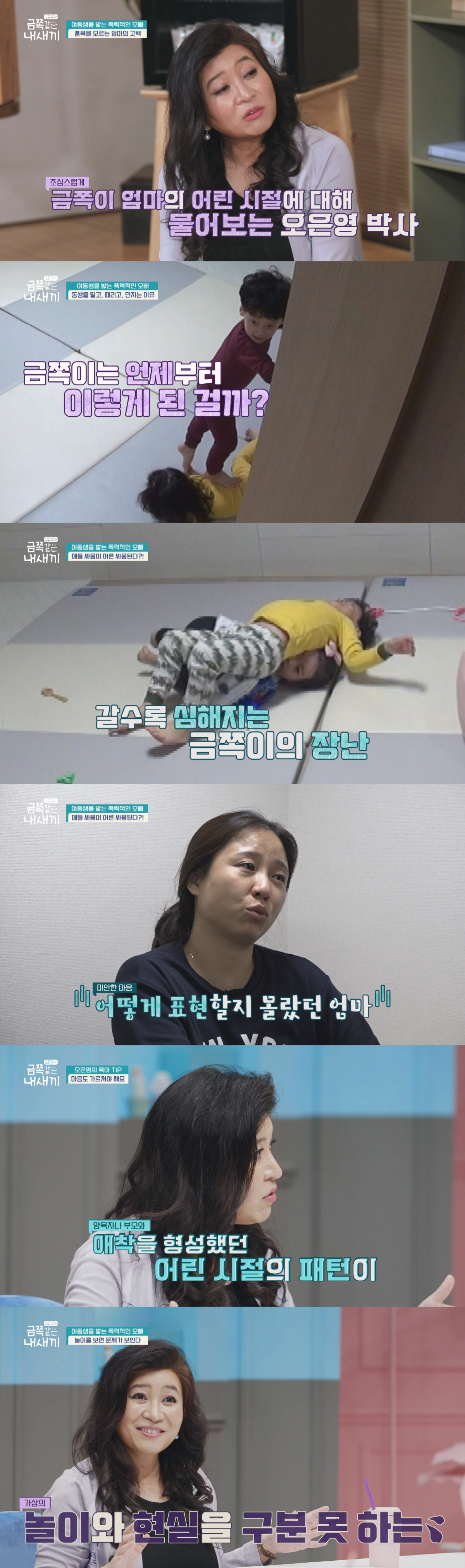 뒤이어 엄마, 아빠와 행복해지고 싶다는 금쪽이의 속마음이 공개되며 출연진 모두가 눈물을 흘리고 만다. 금쪽이가 여동생을 때리는 원인을 파악하고, 가정에 평화를 가져다줄 오은영의 폭력성 잡는 구체적인 금쪽 처방은